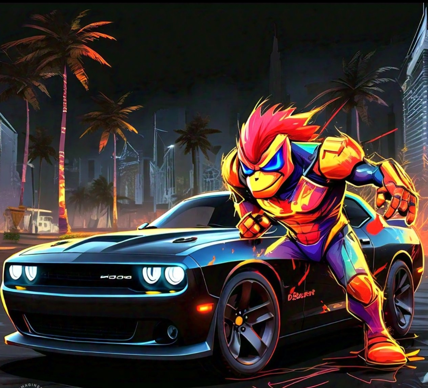 As the cartoon character leans on the car, a spark of passionate ambition ignites within, fueling dreams that soar beyond the horizon. Let the drive for greatness propel you forward, painting a vivid picture of determination and aspiration in the vibrant scene. 🚀🎨