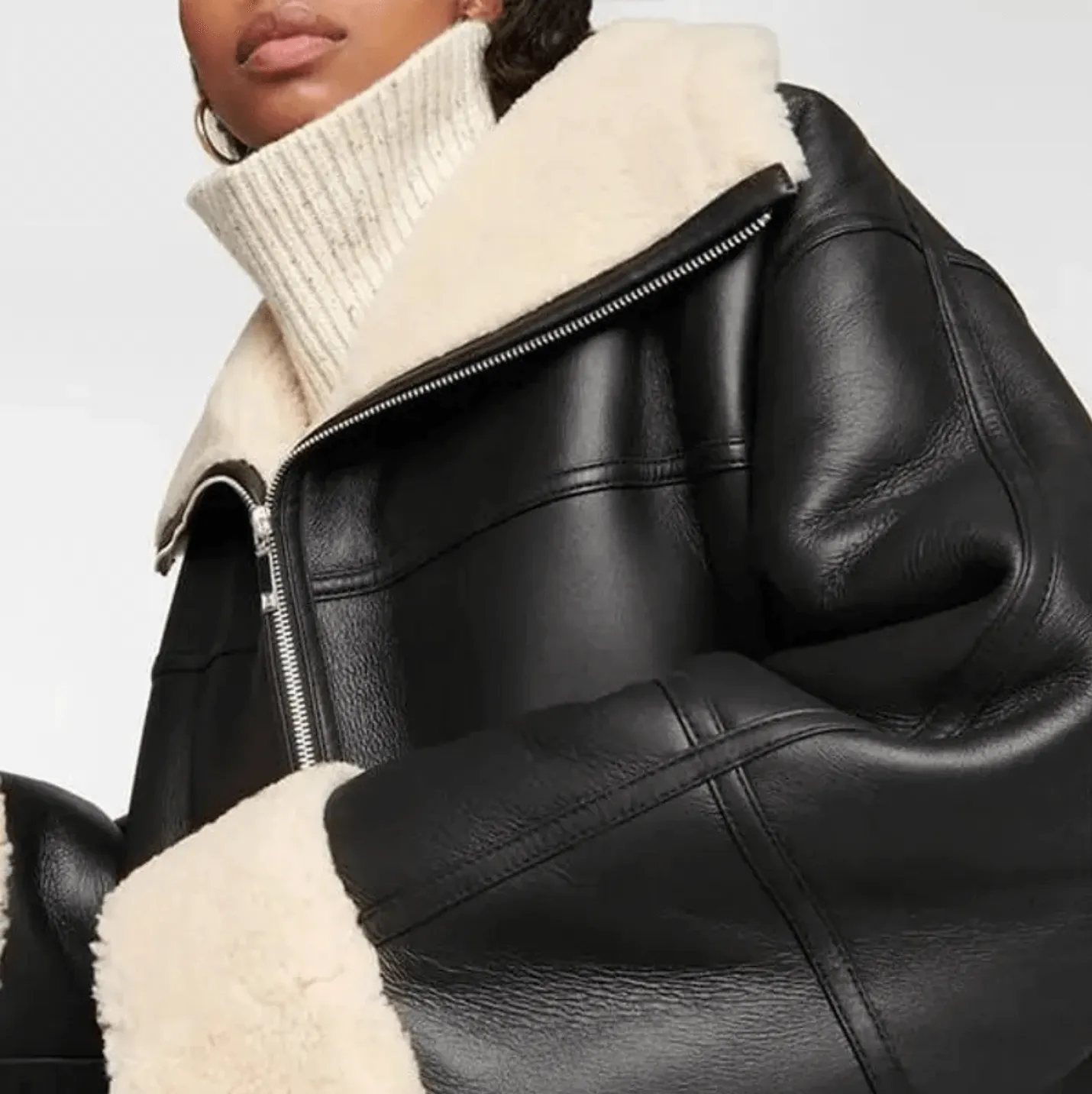 Cuffs: Rolled shearling cuffs for a tailored, sophisticated touch