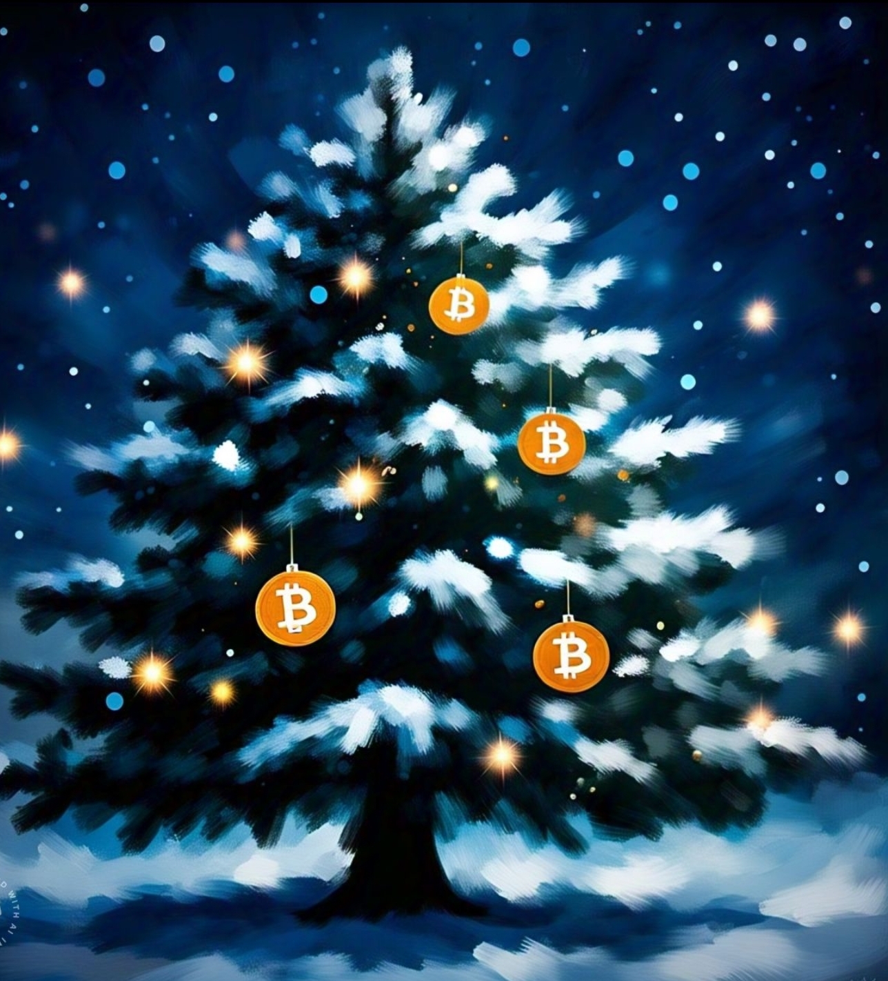 This enchanting artwork captures the spirit of the holiday season with a whimsical twist. The glowing Christmas tree stands tall, adorned with shimmering gold Bitcoin ornaments that sparkle like stars against the backdrop of winter night. Each ornament reflects the light, creating a warm and inviting atmosphere, blending the age-old tradition of Christmas with the modern allure of cryptocurrency. The vibrant colors and soft glow evoke feelings of joy and celebration, inviting viewers to embrace the magic of the season while pondering the new age of digital wealth. It’s a delightful fusion of holiday cheer and contemporary innovation, perfect for sparking conversations around the tree this festive season.