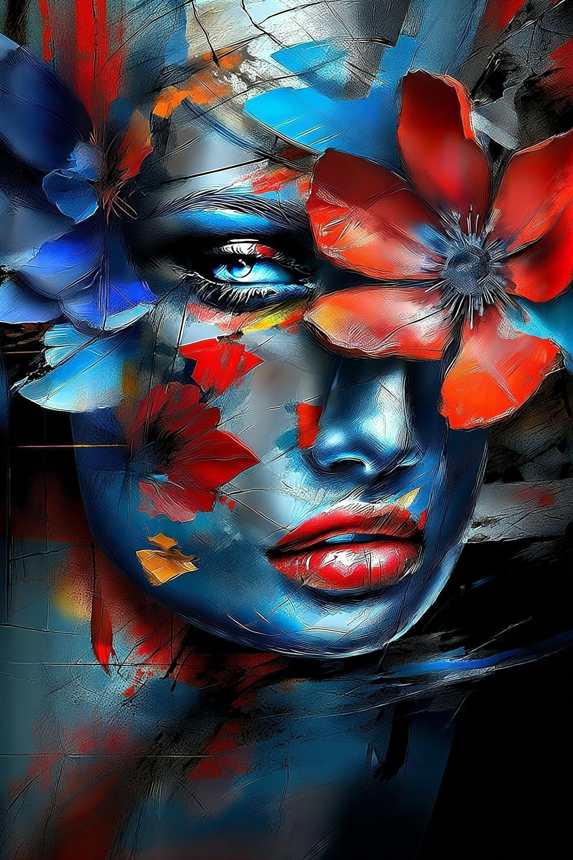 This artwork portrays a figure adorned with a crown of vibrant flowers, embodying the essence of nature’s beauty and femininity.