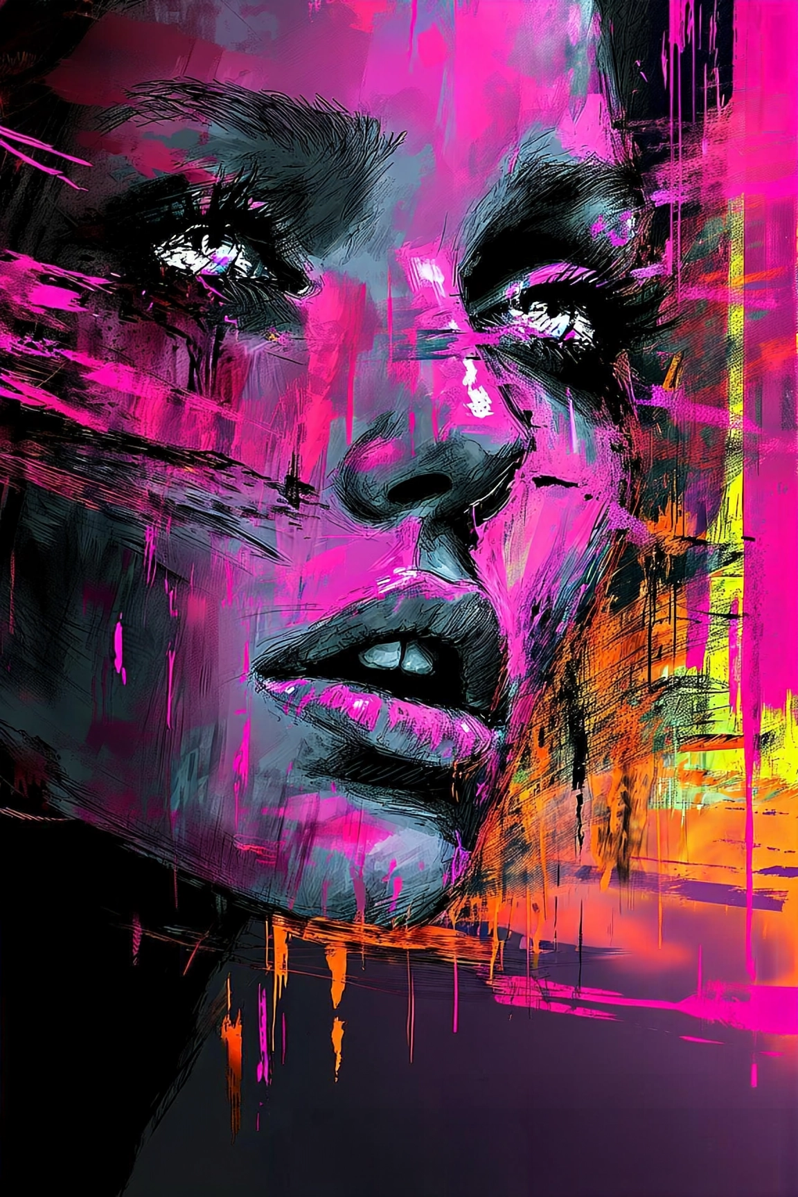 In the depths of the abstract, the face emerges, a canvas of untold stories and emotional scars. Each brushstroke whispers of pain and resilience, reflecting the journey through darkness towards healing. Let this piece serve as a reminder that even amidst chaos, there is beauty in vulnerability, and from emotional damage, strength can arise.